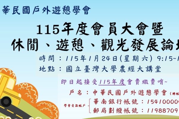 學會活動最新消息會員大會 115年度會員大會暨休閒、遊憩、觀光發展論壇 kiki4 天 ago12 小時 ago01 mins 115年度會員大會暨休閒、遊憩、觀光發展論壇 年會屆次:第20屆第一次會員大會 活動日期:115年01月24日… Read More